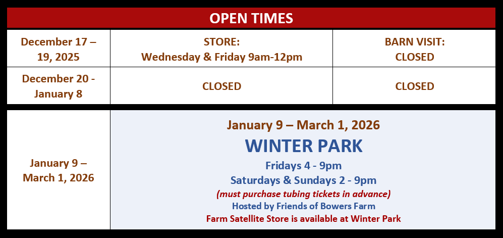 Our store and kitchen are open during Open Barn as well, with grab and go items such as ice cream, donuts, and seasonal meals.